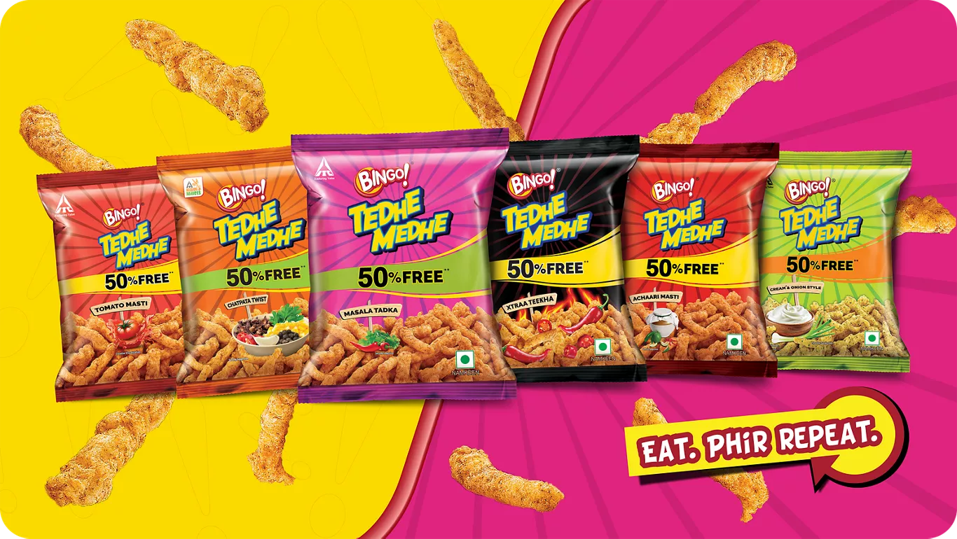 Ignite your taste buds with Bingo! Tedhe Medhe Xtraa Teekha – extra crunchy snack, extra spicy, and packed with fiery, irresistible flavours!